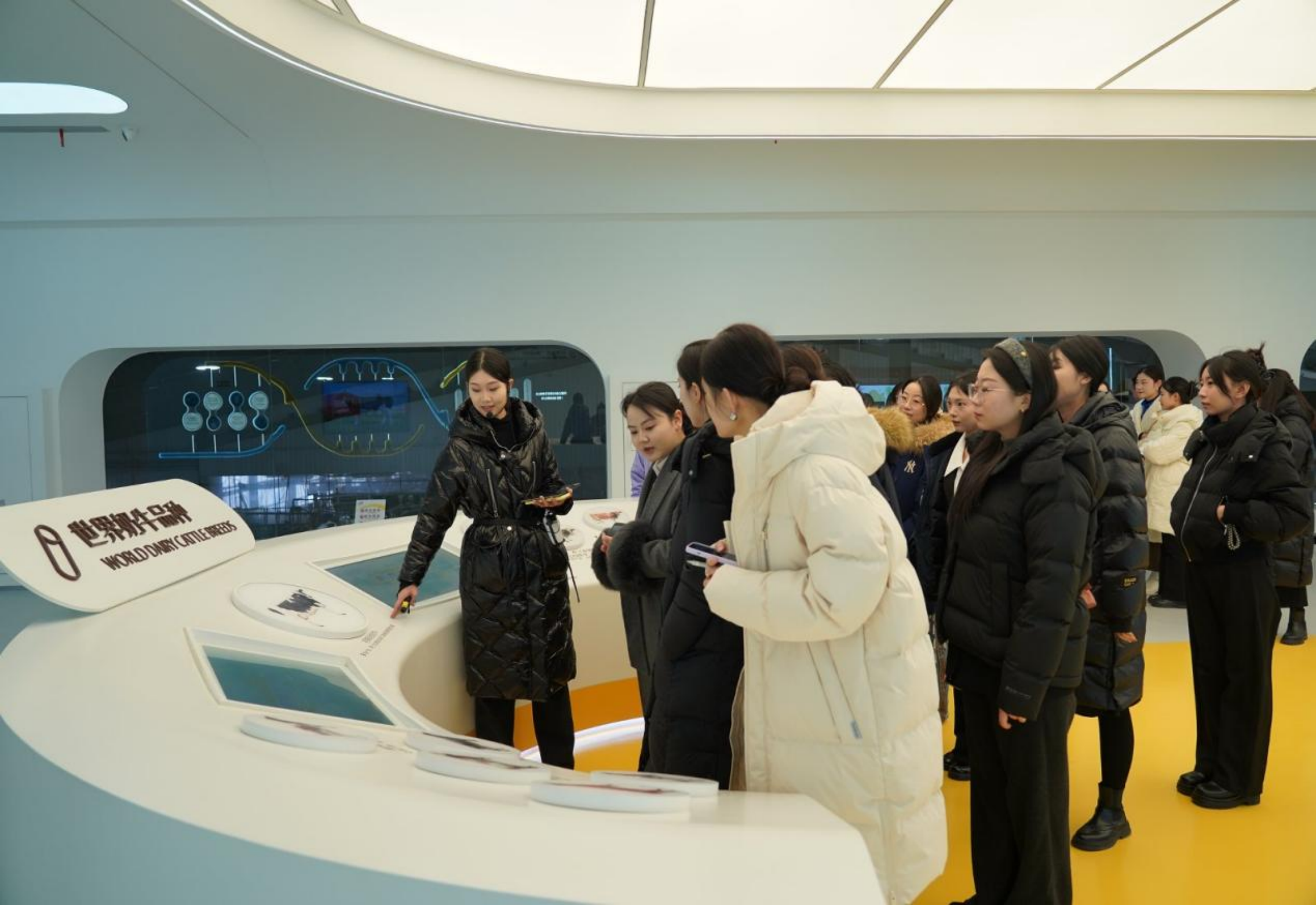 在实地研学环节,带领大家深入敕勒川生态智慧牧场,近距离感受牧草种植、奶牛养殖的全流程标准化管理;走进国家乳业技术创新中心,见证从生乳检测到产品研发的硬核科技实力。通过沉浸式体验让大家对“伊利即品质”有了更深刻的认知,将产业场景转化为生动的讲解素材,提升未来面向游客时的接待服务能力与讲解技巧。