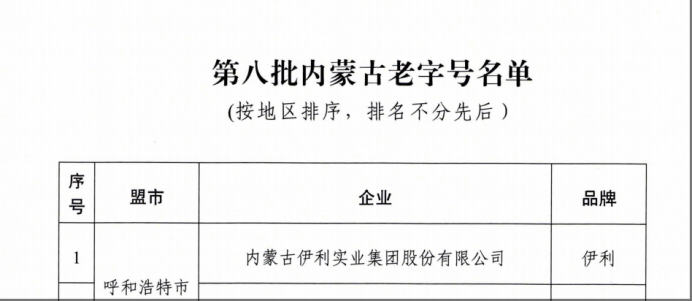 近日,内蒙古自治区商务厅等四部门联合公布第八批内蒙古老字号名单,我公司成功入选。这份荣誉,是对我公司扎根呼和浩特、从1956年起步至今六十余载坚守乳业初心的权威认可,更是对这一本土品牌守正创新、从青城草原走向全球乳业舞台的最好褒奖。