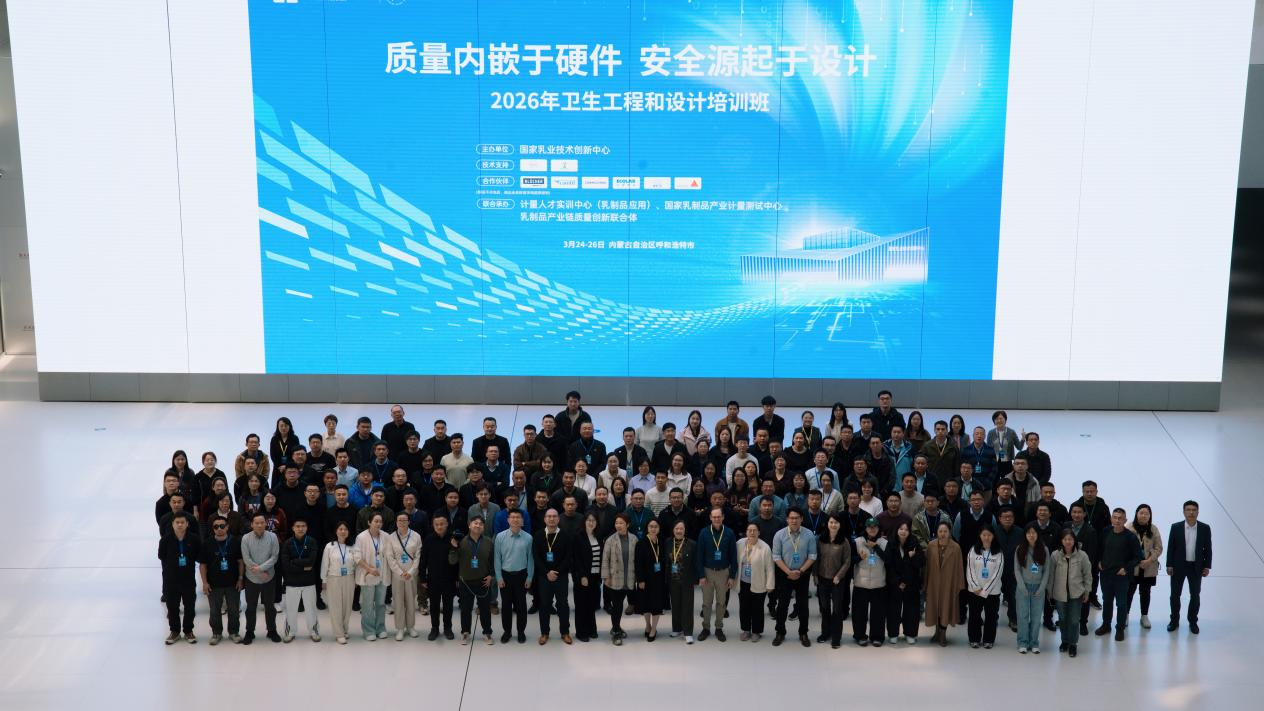 3月26日,以“质量内嵌于硬件,安全源起于设计”为主题的第二届卫生工程与设计培训大会在内蒙古呼和浩特市圆满落幕。本次培训由国家乳业技术创新中心与欧洲卫生工程与设计组织(EHEDG)联合主办,计量人才实训中心(乳制品应用)、国家乳制品产业计量测试中心、乳制品产业链质量创新联合体共同承办。此次大会是国家乳业技术创新中心面向行业提供的一次重要服务,也是其持续打造高质量服务品牌的务实举措。