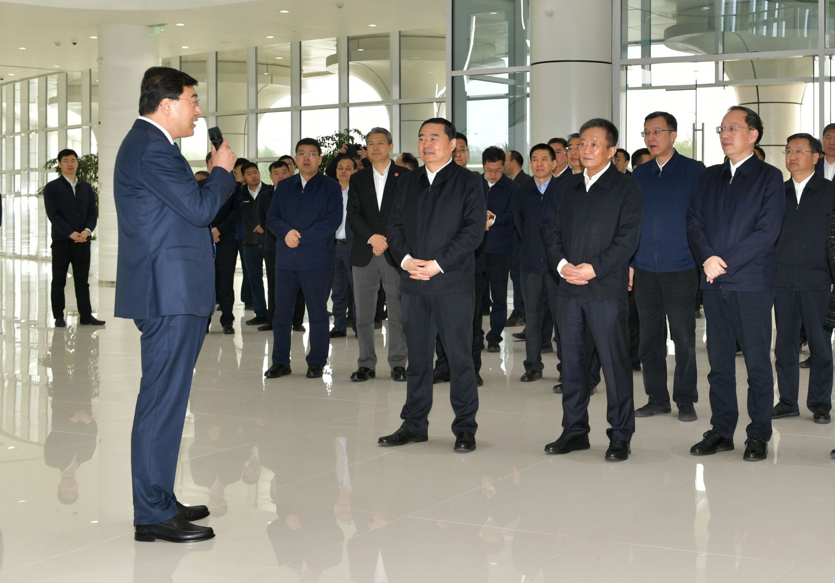 5月11日,辽宁省委书记、人大常委会主任郝鹏,辽宁省委副书记、省长李乐成,辽宁省政协主席周波,辽宁省委常委、沈阳市委书记王新伟,辽宁省委常委、秘书长张成中,辽宁省人大常委会党组副书记、副主任陈向群,辽宁省副省长靳国卫,在内蒙古自治区党委书记、人大常委会主任孙绍骋,内蒙古自治区党委常委、呼和浩特市委书记包钢,内蒙古自治区党委常委、党委秘书长于立新,内蒙古自治区人民政府秘书长、政府办公厅党组书记郑东波等领导的陪同下参观伊利现代智慧健康谷。我公司董事长潘刚全程陪同。