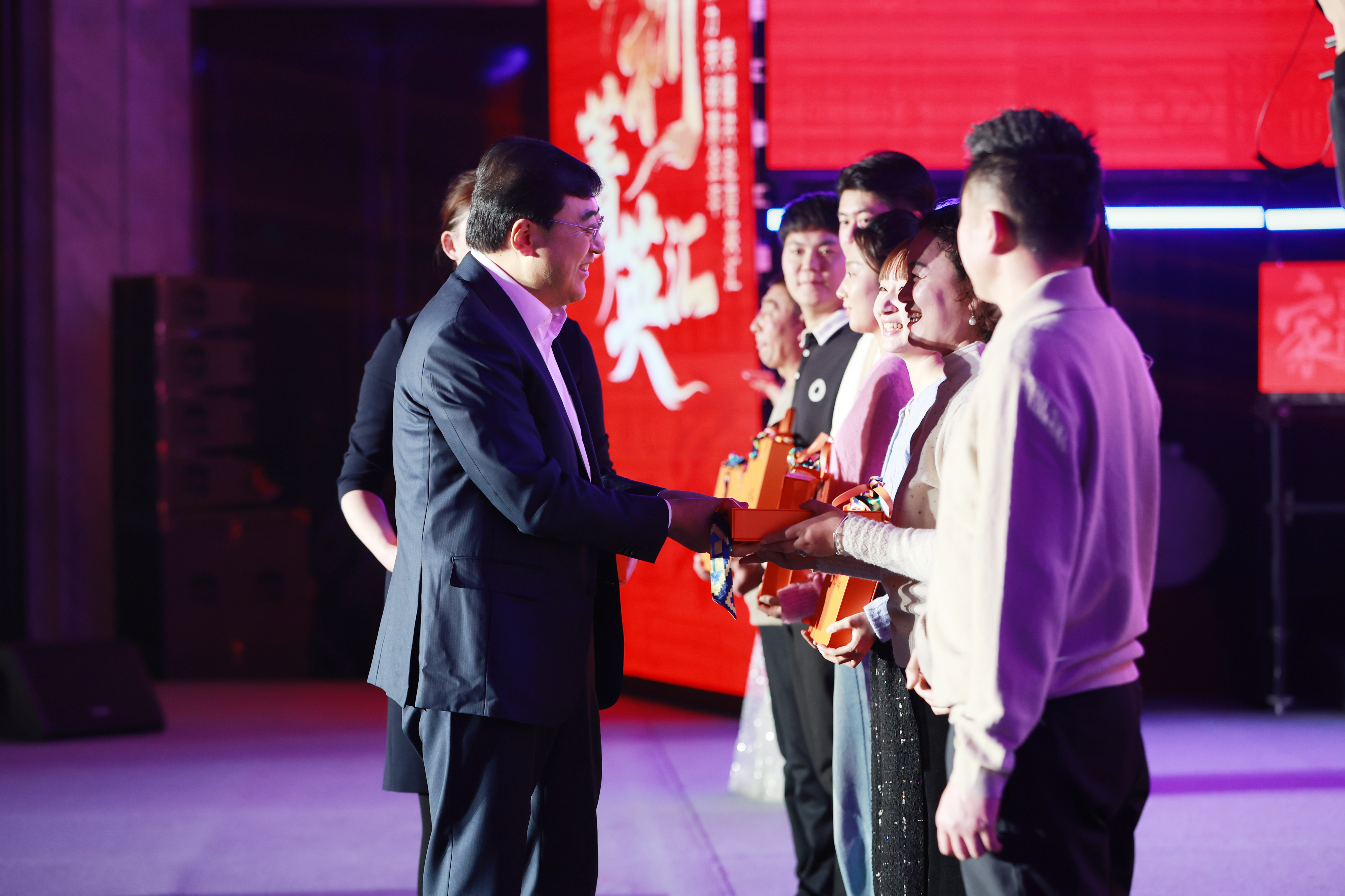 欢声笑语,其乐融融,家宴上精彩节目轮番上演。《蒙元嘉年华》以磅礴气势拉开欢宴序幕。相声中的祝福语接龙趣味幽默,向全场送出十全十美的美好祝愿。伴着祝酒歌的激情豪迈,菁英和家属们打起拍子,随着节奏越来越快,拍手声也越来越响,气氛异常火热。抽奖环节惊喜连连,同桌的菁英和家属们一起“数钞票”“接金币”“赛马”,大屏上每桌的数据实时变化,互相追赶,菁英和家属们兴奋地戳着手机屏幕,呼喊加油声此起彼伏,全场一片欢腾。温情时刻同样令人难忘。“特别的爱给特别的你,你让我越发坚信未来可期……”8位菁英与家属代表深情合唱《特别的爱给特别的你》,用歌声婉转传递真挚谢意;员工代表接连献上《风吹麦浪》《我记得》《想把我唱给你听》等歌曲,以旋律深情诉说心底真情。最后,《相亲相爱一家人》的旋律响起,全场菁英和家属们自发举起手臂,共同挥舞,每个人都用歌声表达着:“我们是一家人,相亲相爱的一家人”,此刻所有人心潮澎湃,全场温情满溢。