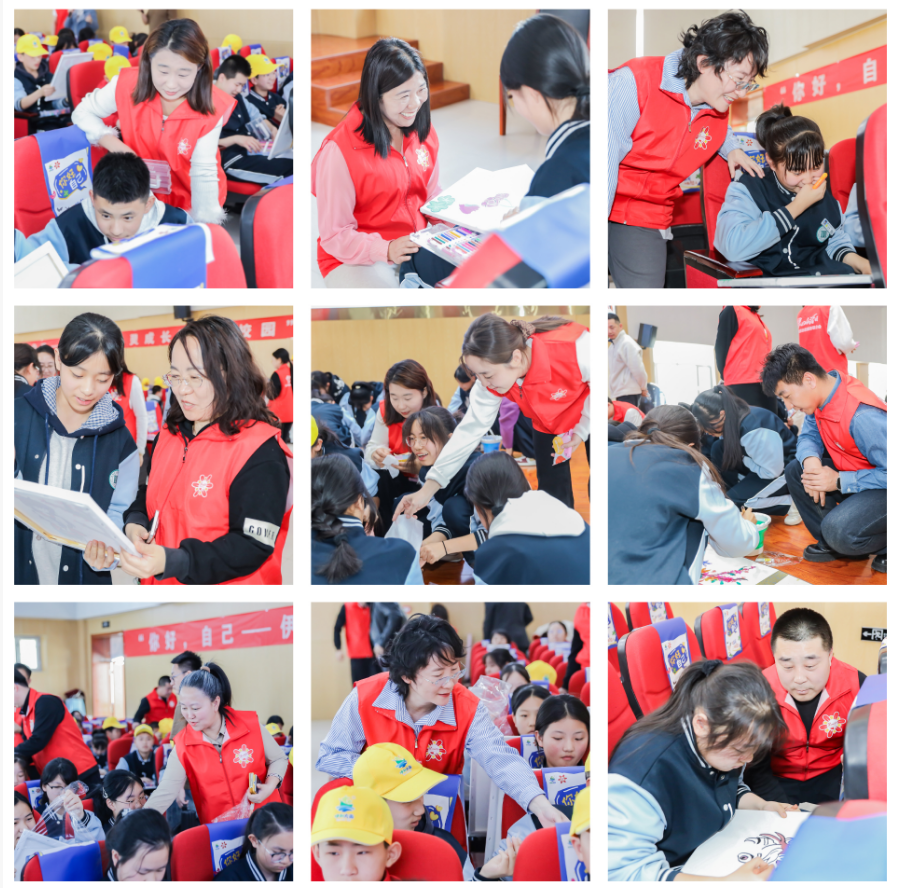 课堂上,从“破冰启航,遇见自我”的互动游戏,到“画笔为媒,描绘自我”的创作环节,专家团队一步步引导孩子们打开心扉。“伊心向阳”志愿者与孩子们分组围坐、并肩创作,他们耐心倾听孩子的奇思妙想,轻声引导其用画笔勾勒心中的自己,将藏在心底的情绪与梦想一一描绘。